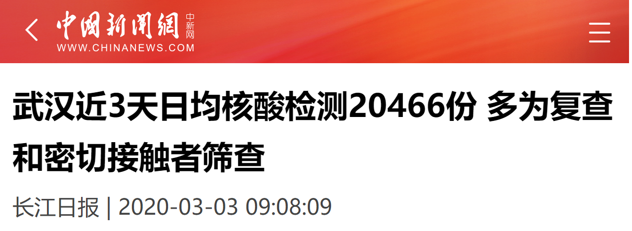 中国疫情最严重的武汉,最近几天日均接受核酸检测的人是2万多人,是日均!!
