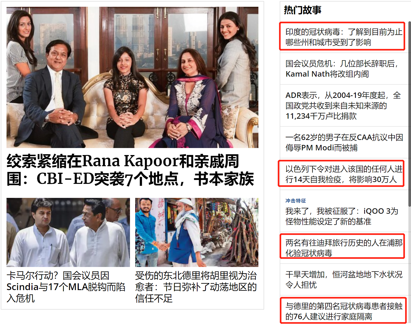 这次首页有4条跟病毒相关,不过并不是放在头条,看得出印度对病毒有点不屑一顾。