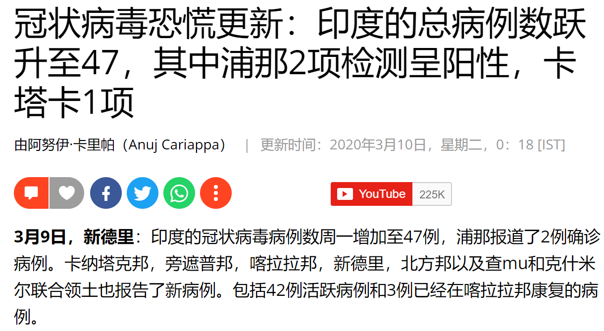 接下来提到印度的第一例确诊病例是1月30日在南部的德里久尔发现的,是一名在中国学习的印度人,趁春节假期回来印度,接下来2月3日确诊的2例也是从中国回来的学生,看到这我其实有点怀疑印度目前仅对海外回来的人进行核酸检验。