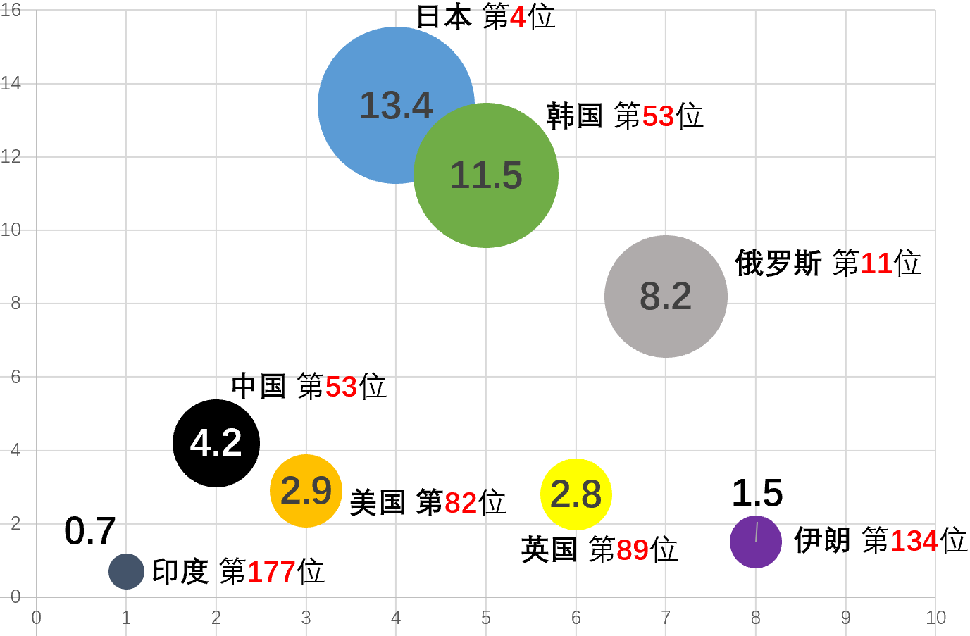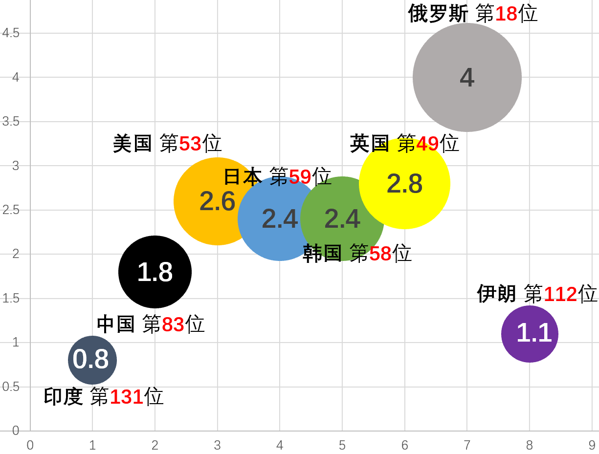 下图圆圈中的数字是每千人床位数。