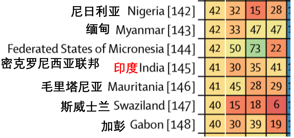 2018年著名医学期刊《柳叶刀》曾发过一份报告,给全球195个国家和地区的医疗水平打分,100分满分印度只有41分,排行第145位,跟印度医疗水平差不多的大都是非洲国家。