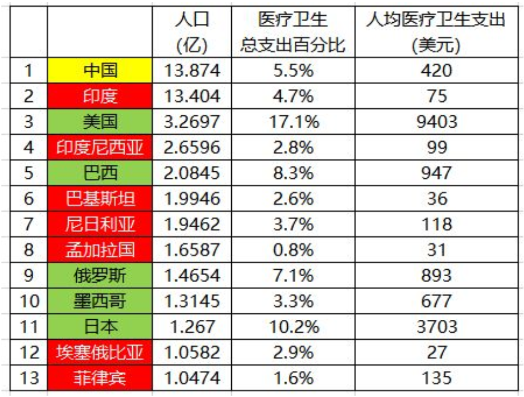 印度医疗水平差,跟医疗支出少有关,印度的医疗支出仅占GDP的4.7%,低于中国的5.5%,而人均医疗支出仅有中国的1/6,数据来自维基百科。