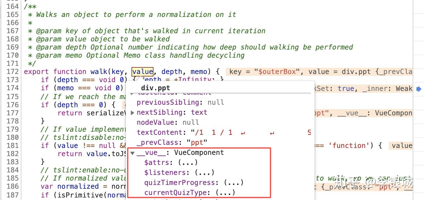 sentry会把Vue组件的props取出来进行normalize格式化,如下代码所示: