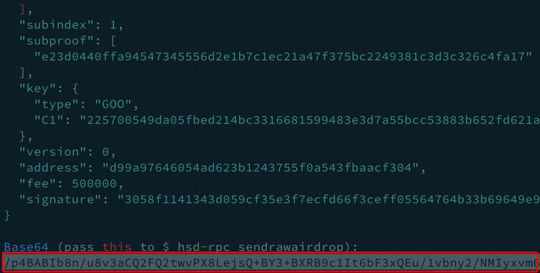 注: 这一步会用到私钥,有很多人担忧这里存在安全隐患,文档上有说明说是用私钥只用于生成加密证明,不会被上传,证明里也不会包含私钥的任何信息,hs-airdrop 的源码是开源的,可以 review 它的代码,或者实在不放心的可以在操作完之后就把用于 GitHub 的密钥都换掉。