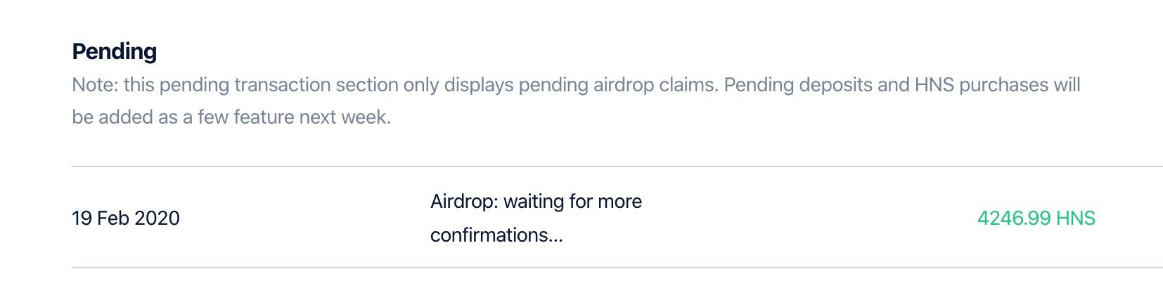 - 正常这时候就能在 https://www.namebase.io/dashboard 看到有一笔交易在 Pending 中了: