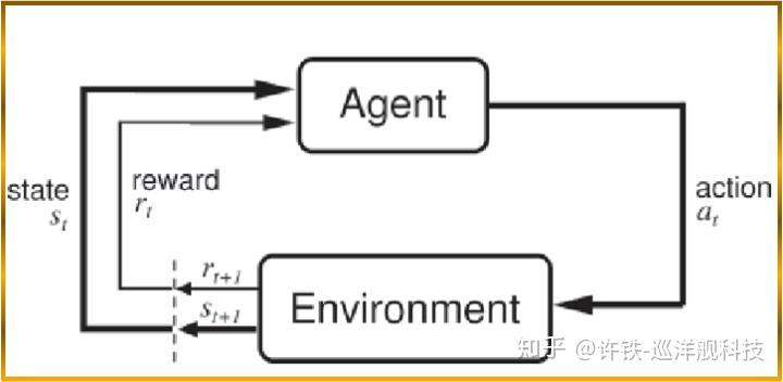 强化学习通常用如上框图实现, 即agent会根据环境给与的reward调整action的一个反馈系统, 最终实现利益最大化, 难点在于agent的行为通常改变环境,而环境影响行为策略。