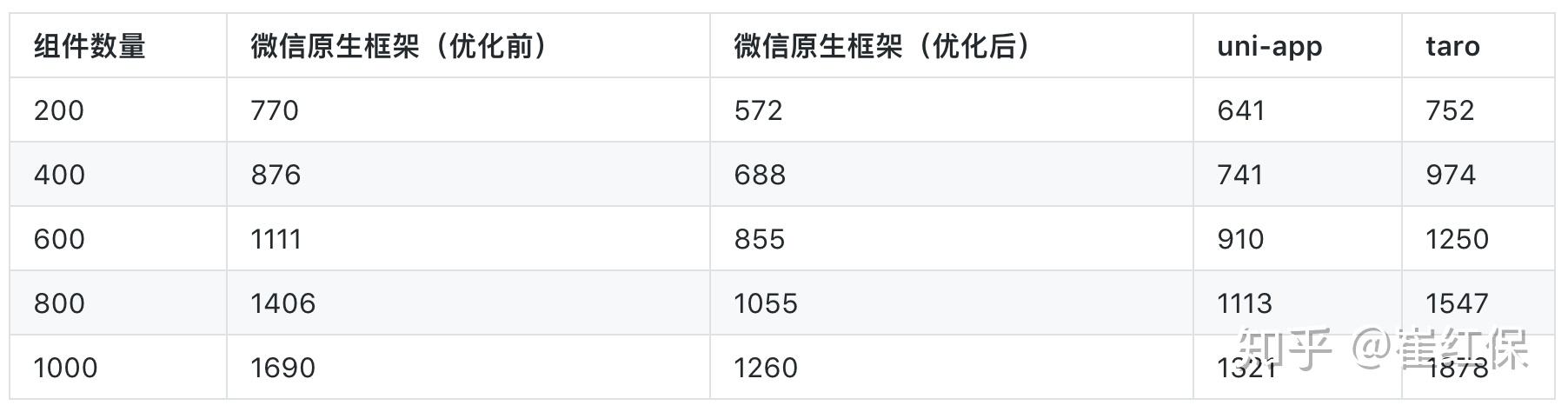 微信原生框架耗时主要在setData调用上,开发者若不单独优化,则每次都会传递大量数据;而 uni-app、taro 都在调用setData之前自动做diff计算,每次仅传递有变化的数据。