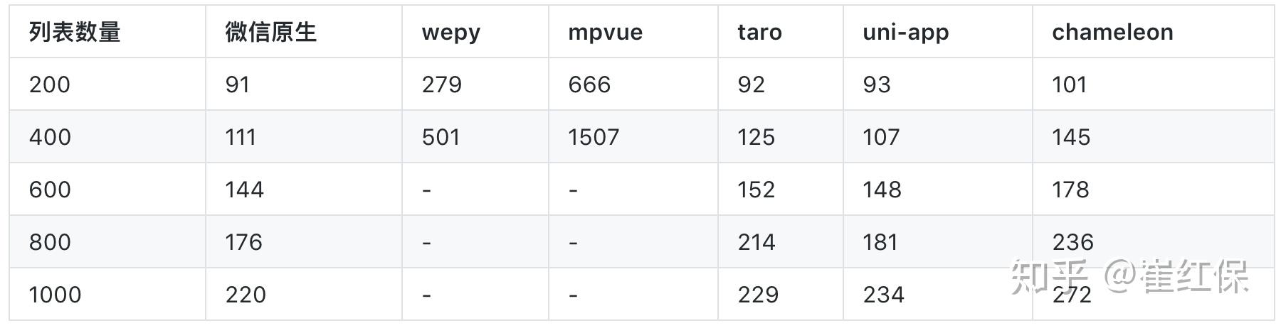 综合评估,本项评测结论:uni-app > taro > mpvue > wepy > chameleon
