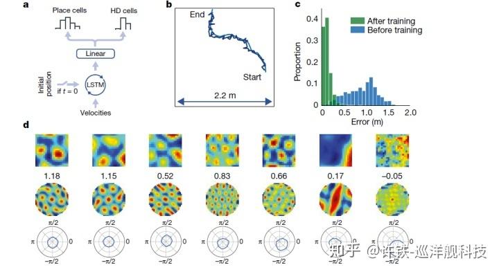 2018年大红大紫的文章,这篇文章试图直接把grid cell加入到人工智能导航体里, 通过监督学习预训练我们可以得到一个与生物grid cell 感受野特性类似的网络模型,而非常有趣的是, 如同当年的认知科学家所阐述的,当这个模块引入,导航体出现了类似于直接利用捷径这样的行为, 又称为更智能更灵活的导航方法。