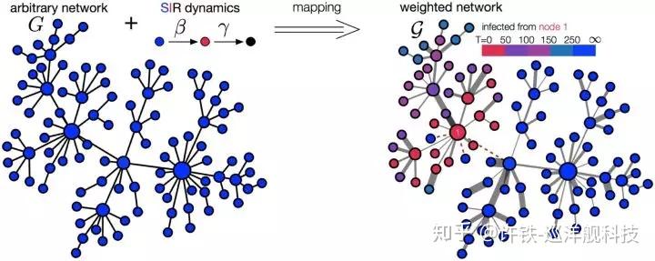 这时候我们必须借助网络的力量。网络即高维的动力学系统。网络有很多层的含义, 在一个小区或社区里人们相互连接形成网络,在城市和城市之间有立体的交通网络。这些网络是构成病毒传播的第一层体系。整个网络, 组成一个层级化的复杂系统。这时候整个传播过程变得异常复杂, 每个个体只能传播到相邻节点,而人员需要靠交通网络流动。这时候网络结构本身的性质对传播开始起到至关重要的作用。如果直接考虑个体, 整个模型将参数大到无法想象, 所以在考虑网络的时候,我们不妨把每个城市节点的方程看成上面的SEIR模型, 然后考虑不同的城市间的耦合, 这样我们仿佛得到了一个全部城市组成的动力学方程组。