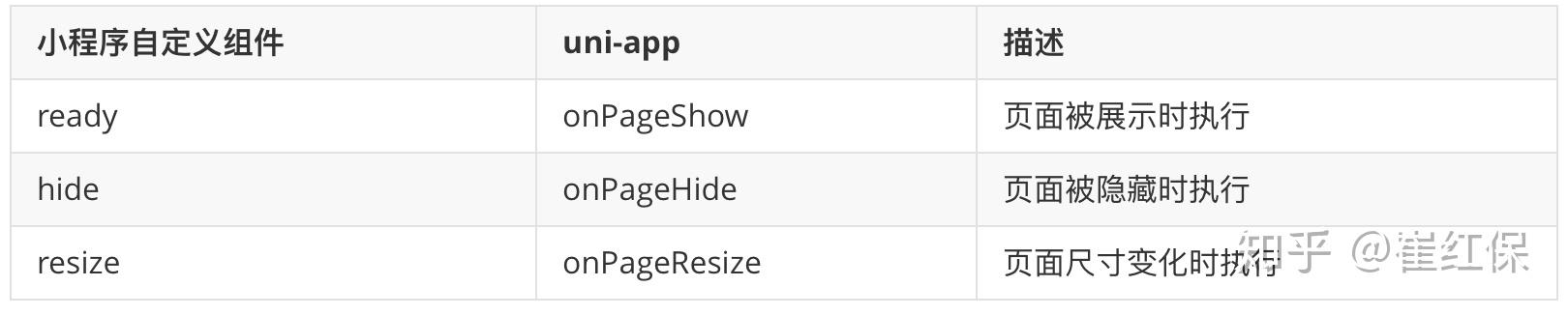 - 生命周期:Vue.js的理念是一切皆为组件,没有应用和页面的概念;框架需创造出应用及页面的概念,模拟onLaunch、onShow等钩子