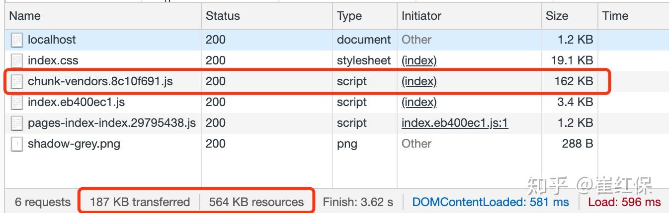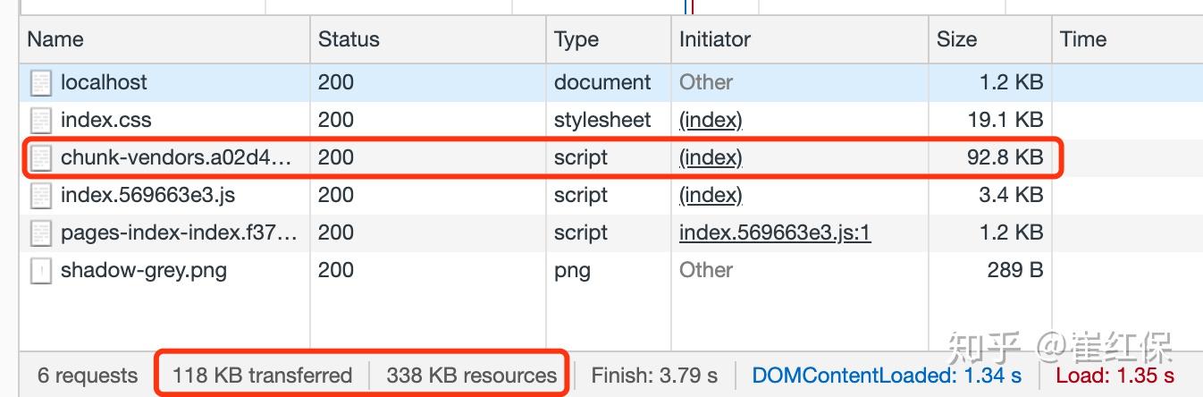 可以看到框架主库(chunk-vendors.js)从162k变为92.8k,体积压缩43%!