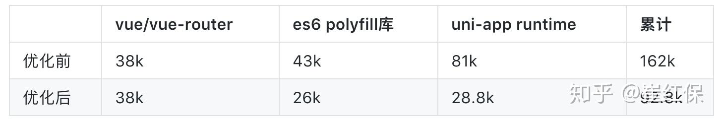 - uni-app runtime从81k瘦身为28.8k,裁剪比例达到64%