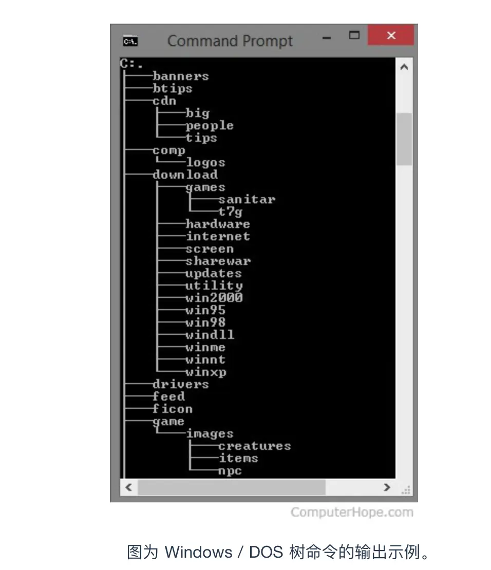 它显示所有本地和子目录(例如,cdn 目录中的 big 目录)。当前目录是 C 盘驱动器的根目录。之所以称为根目录,是因为该目录下没有任何内容,而其他目录都在该目录下分支。