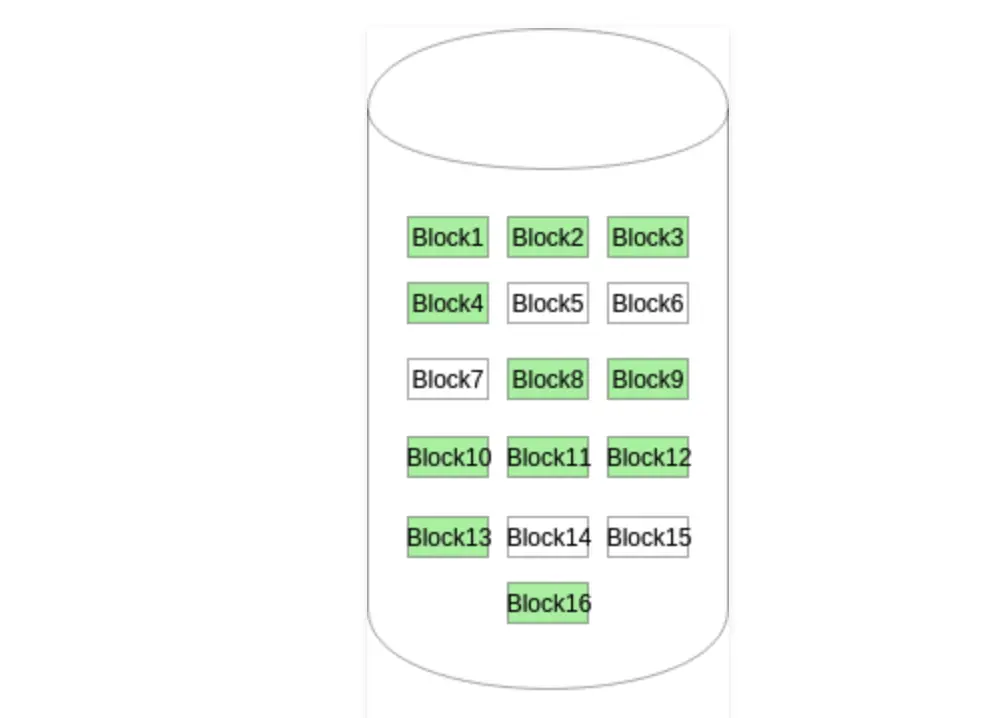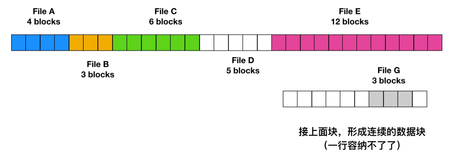 最糟糕的情况是在两个或者多个文件中出现同一个数据块,如下所示