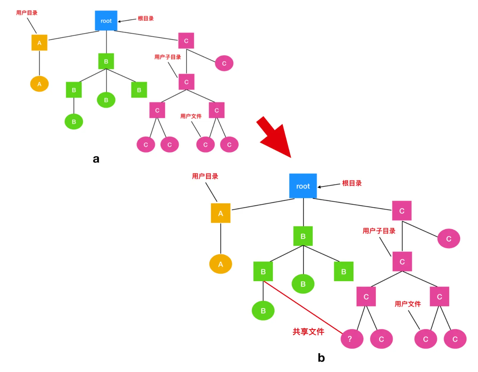 注意,由于存在硬连接,一个文件可能出现在两个或多个目录中。而遇到符号链接是不计数的,不会对目标文件的计数器 + 1。