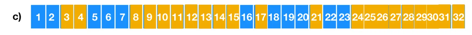 避免大部分磁盘 I/O 的另一种方法是拆分完整的指针块。这样,当释放三个块时,变化不再是从 a - b,而是从 a - c,如下图所示