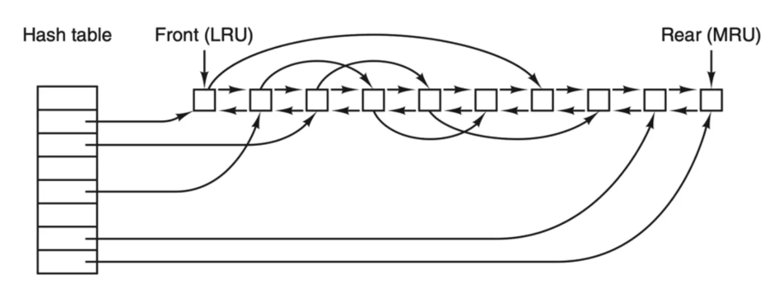 由于在高速缓存中有许多块,所以需要某种方法快速确定所需的块是否存在。常用方法是将设备和磁盘地址进行散列操作,然后,在散列表中查找结果。具有相同散列值的块在一个链表中连接在一起(这个数据结构是不是很像 HashMap?),这样就可以沿着冲突链查找其他块。