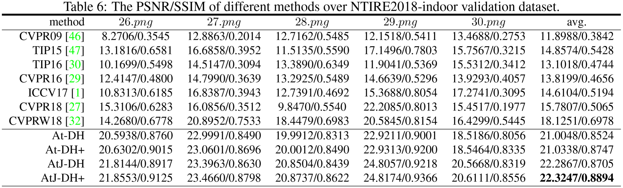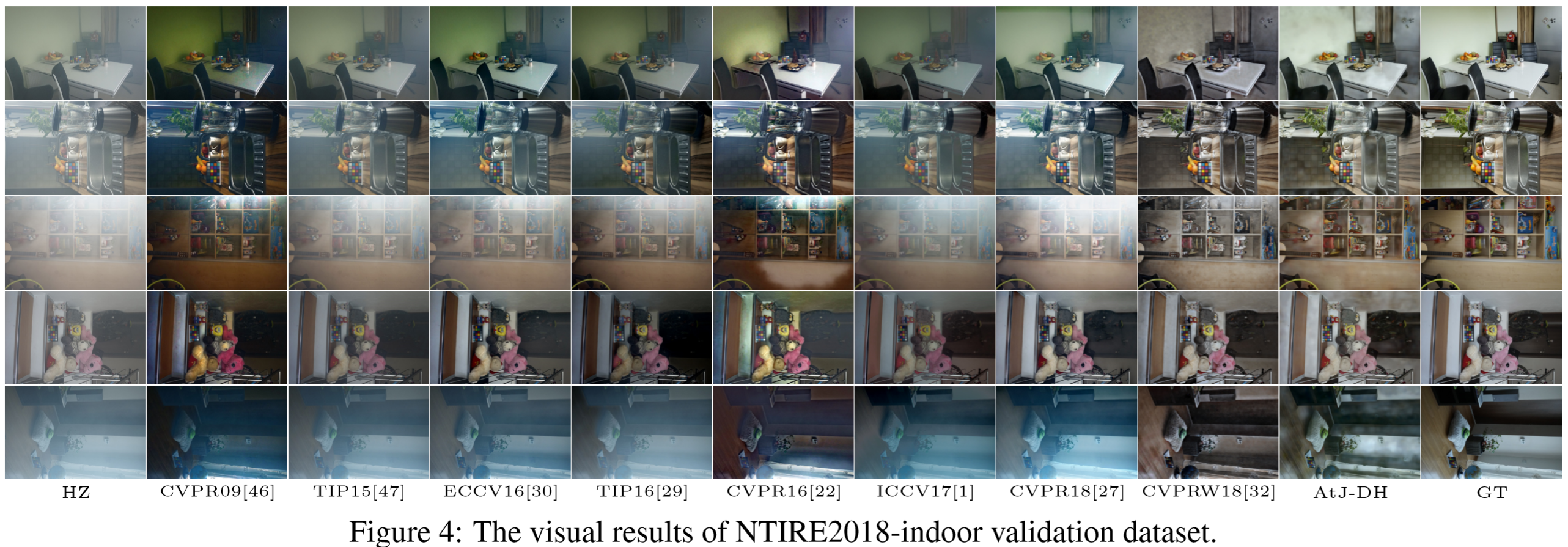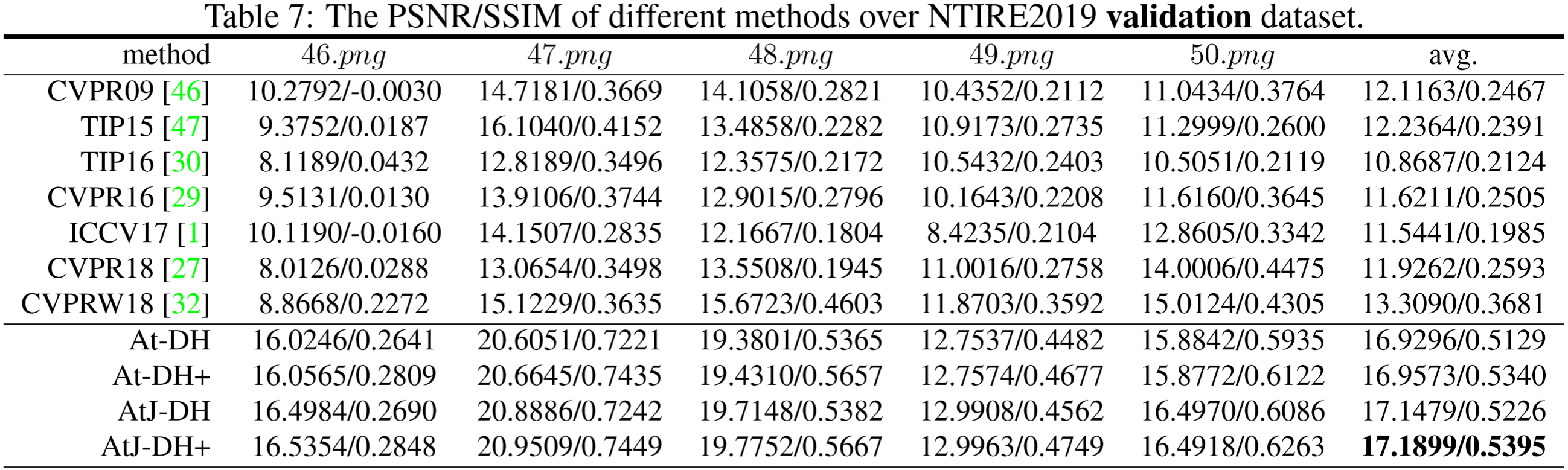 该文章是NTIRE 2019去雾竞赛中的冠军,其核心之处在于给出了两个新网络At-DH和AtJ-DH并且在 NTIRE2019和NTIRE2018的数据集中得到了较好的指标。该文章是实验性质的论文,没有太多的理论和观点的分析,只以高指标为目标。