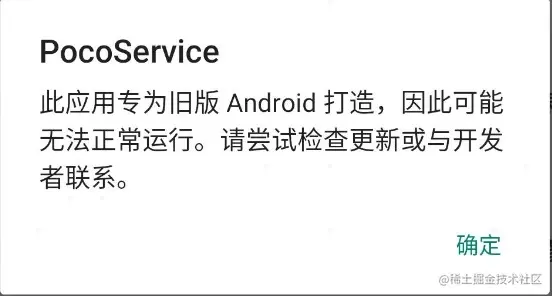 另外, poco-service.apk 暂时没有更新,因此在Android10上面会弹出一个低版本的提示,不过不影响使用~(直接点击 确认 即可)