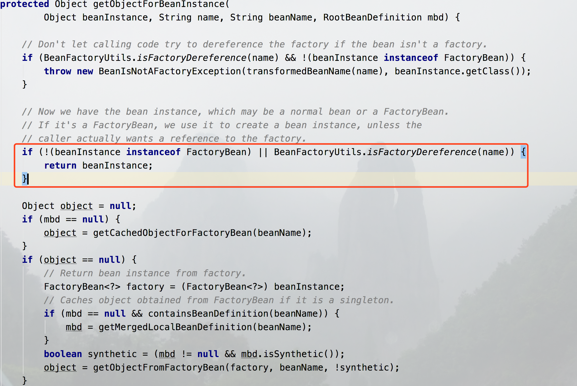 if (isFactoryBean(beanName)) {