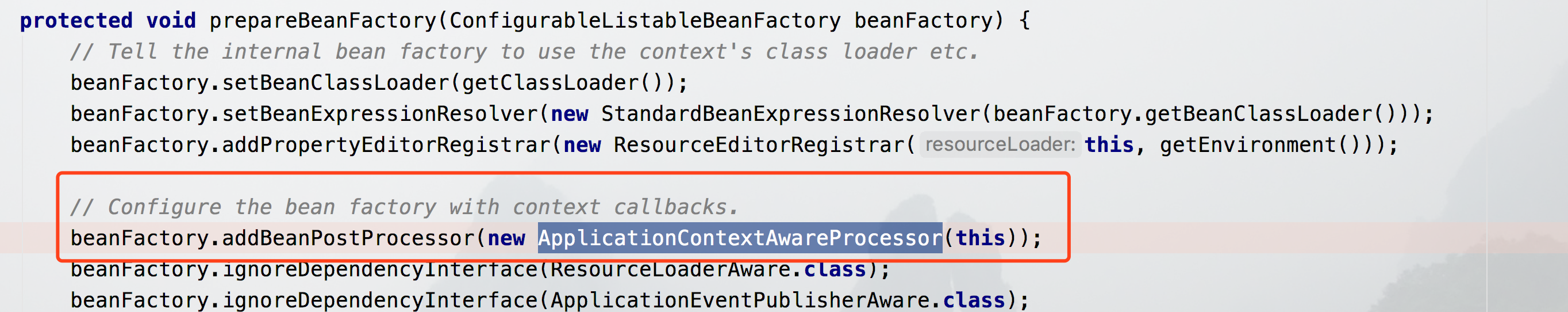 ApplicationContextAwareProcessor是一个bean的后置处理器,在bean被初始化后,就会实现该后置处理器。