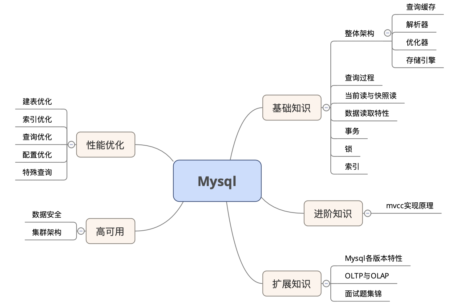 下面顺着Mysql架构图,按照从上往下的顺序,逐步引申出各知识点