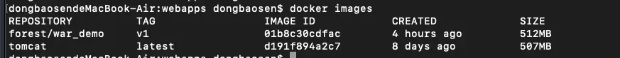 docker build -t="forest/war_demo:v1" .Docker images ,发现镜像构建成功
