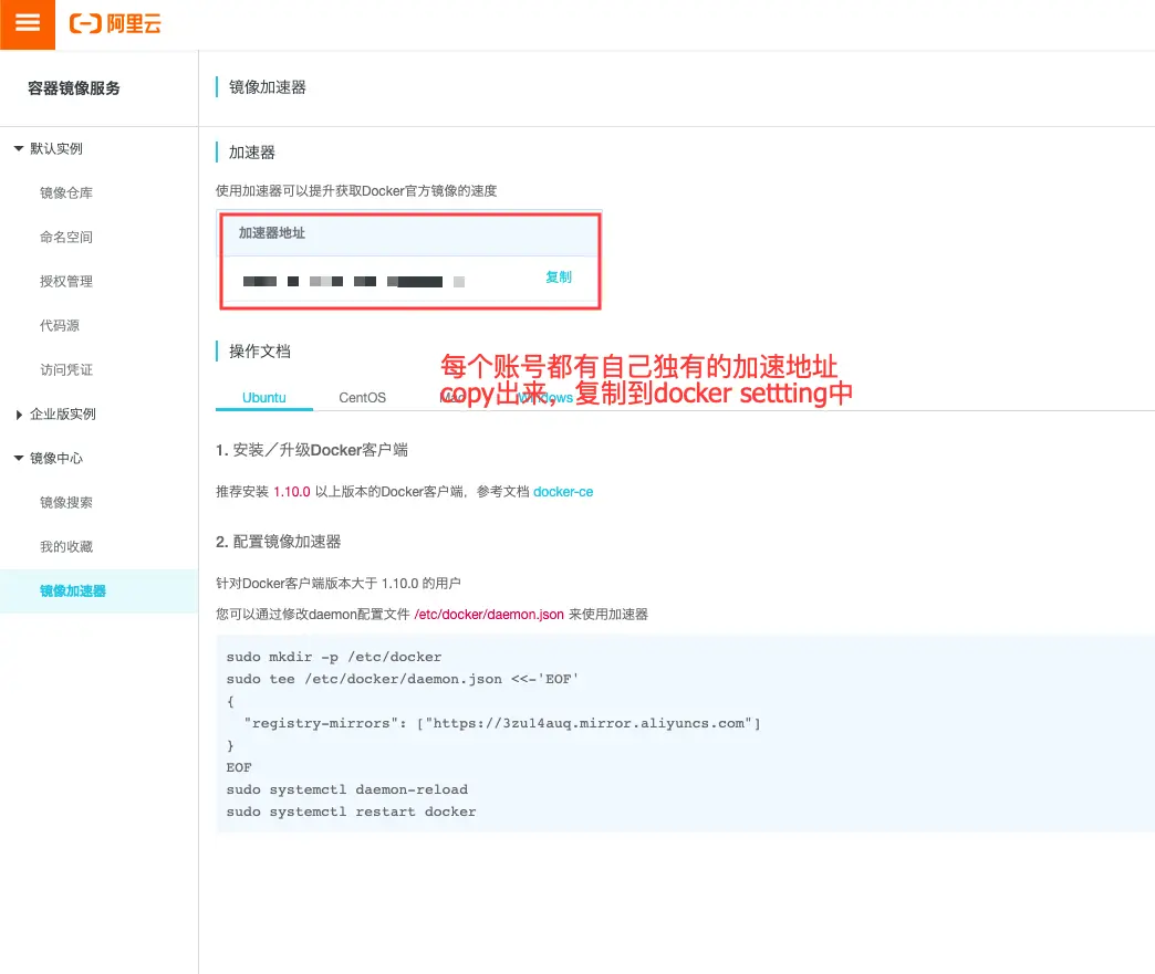 - 代理配置:在docker setting配置阿里云代理是为了能够加速下载docker image,cr.console.aliyun.com/cn-hangzhou…,需要登录,二维码扫描支付宝账号即可