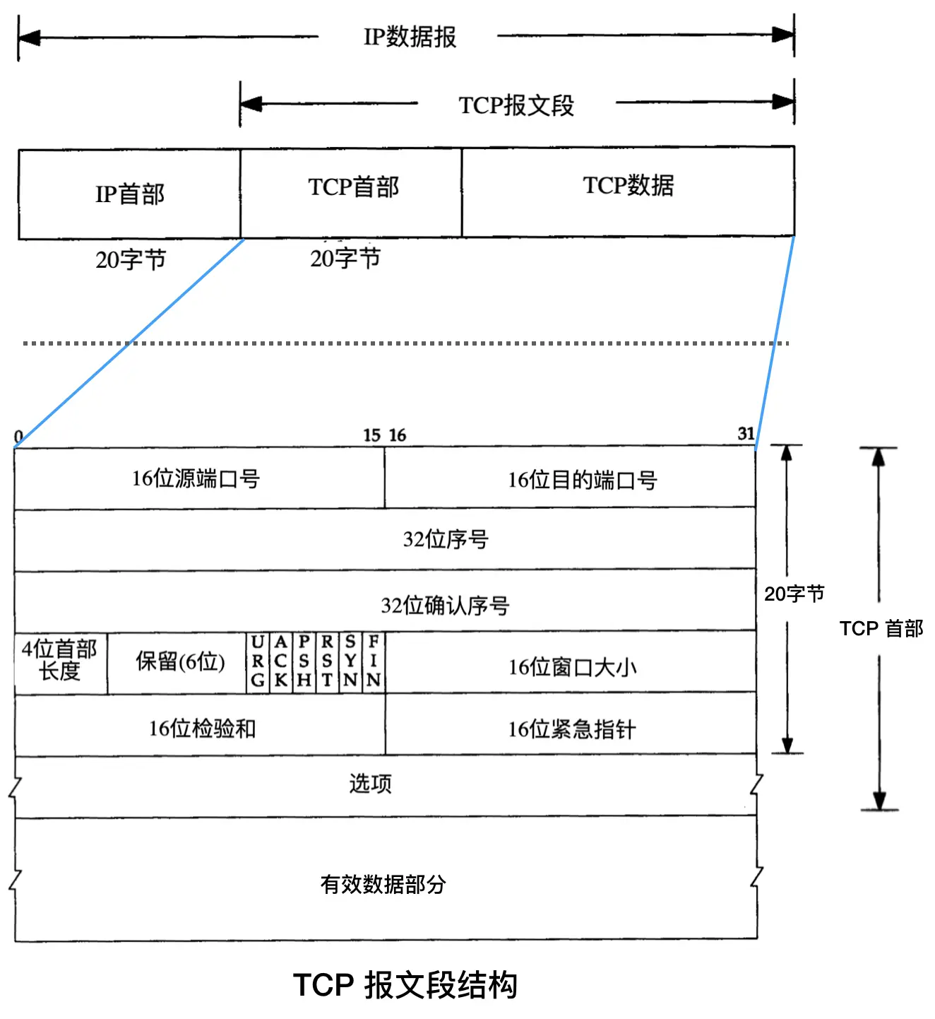 上面多次提到了报文段的概念,其结构非常重要,后面的连接过程和拥塞控制等内容也要用到相关概念,先在这里介绍一下。