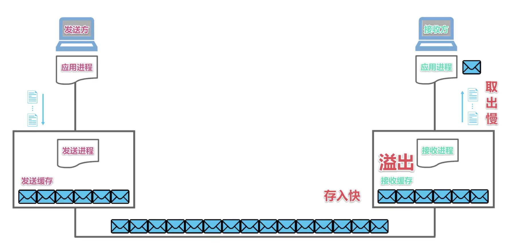 - 流量控制:TCP 双方都有固定大小的缓冲区,流量控制的原理是利用滑动窗口控制数据发送速度,避免缓冲区溢出导致数据丢失。