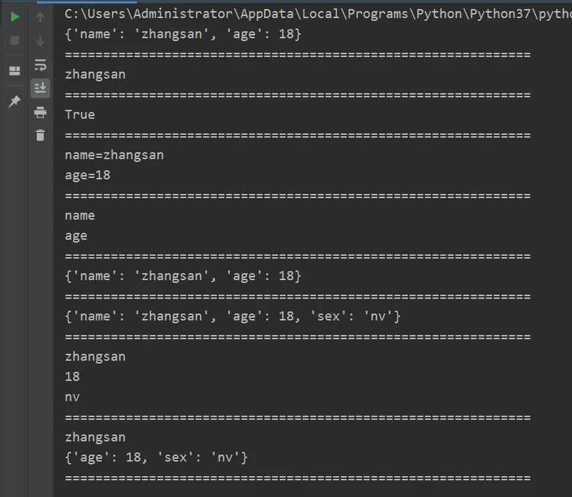 dict1 = {'name': 'zhangsan', 'age': 18}