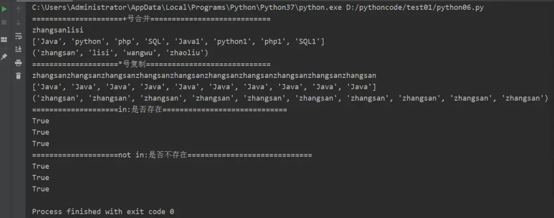 print("x" not in "lisi") # 字符串操作