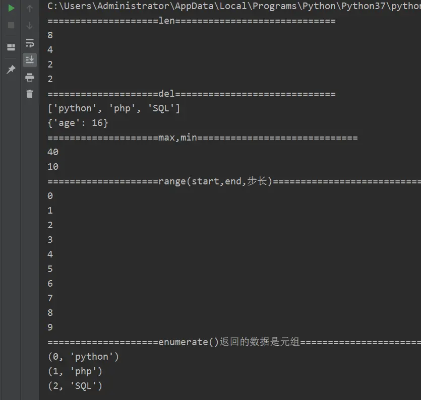 print("====================enumerate()返回的数据是元组=============================")