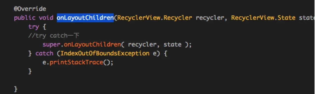 - 自定义 LayoutManager 类,继承 LinearLayoutManager ,重写 onLayoutChildren 方法。