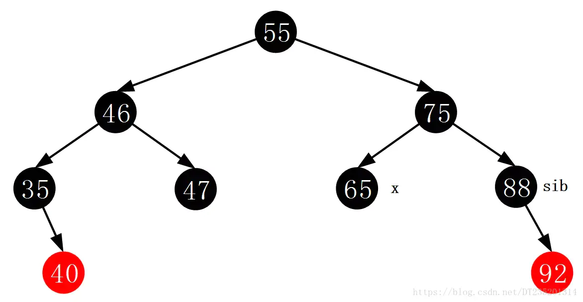 sib = rightOf(parentOf(x)); //旋转之后重新赋值兄弟节点sib,原sib变成x的祖父节点(见左旋转动图)