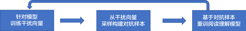 (3)使用干扰文本构建用于训练的对抗样本,并重新训练阅读理解模型并重复上述步骤直至收敛。