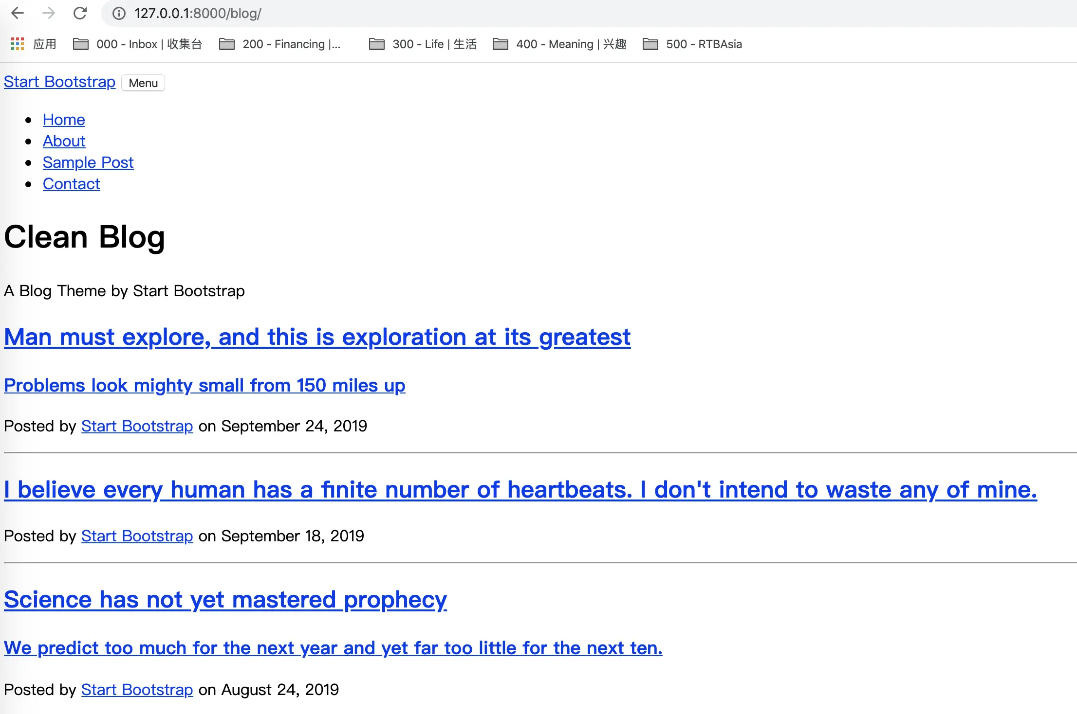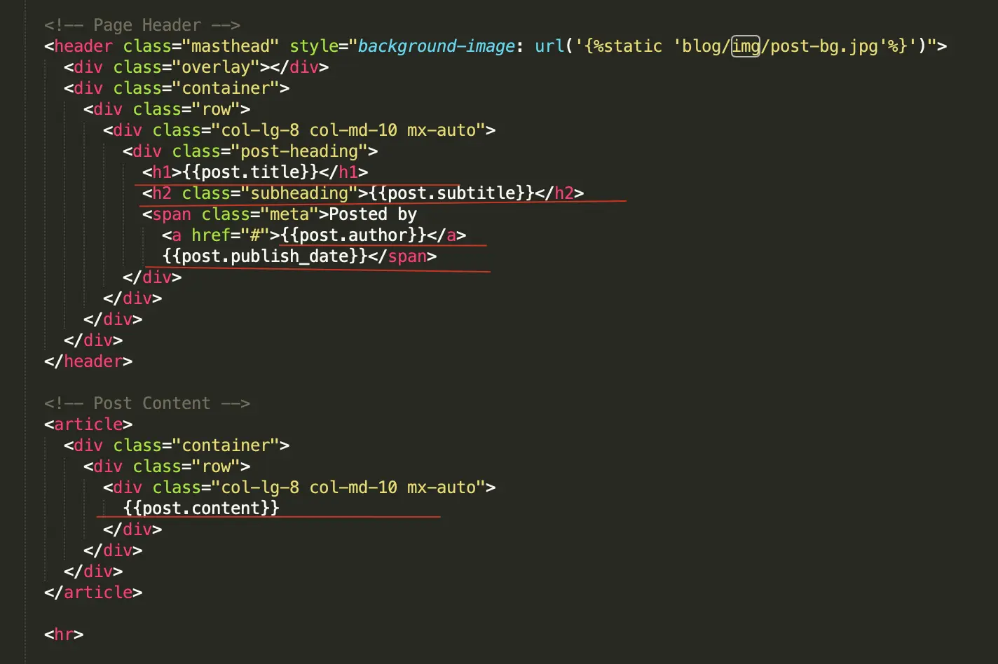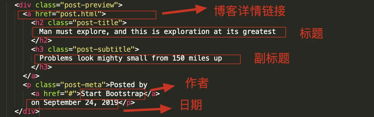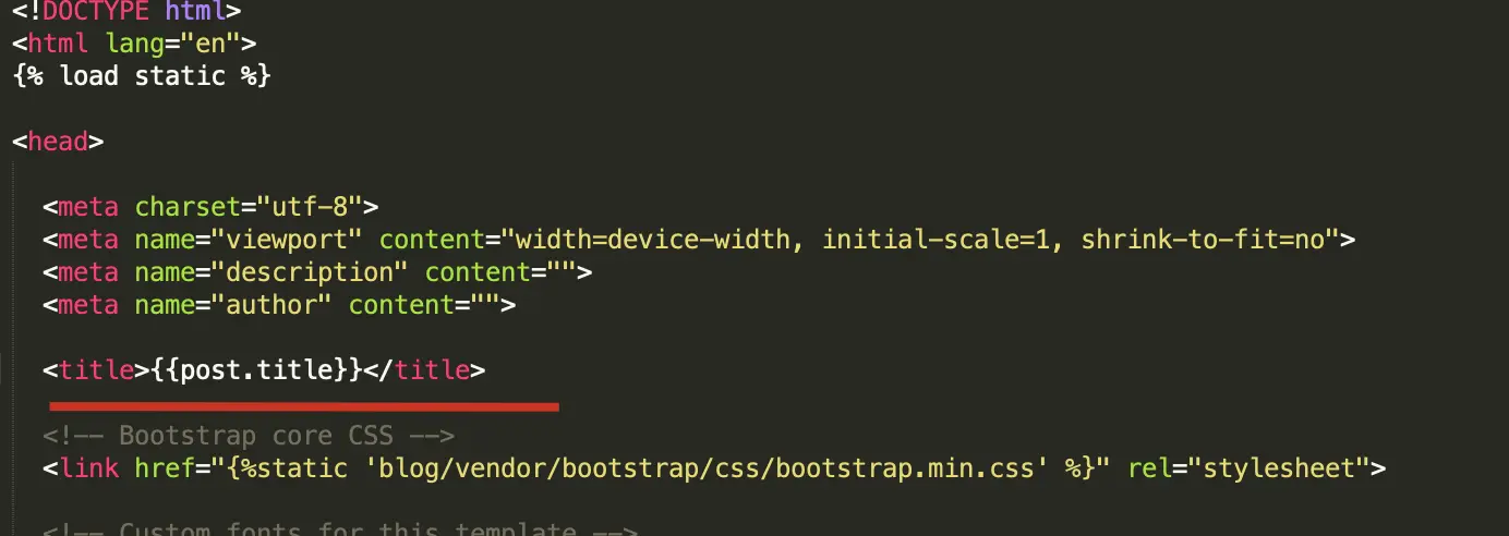 <link href="{%static 'blog/vendor/bootstrap/css/bootstrap.min.css' %}" rel="stylesheet">修改title、标题、副标题、作者、正文、时间: