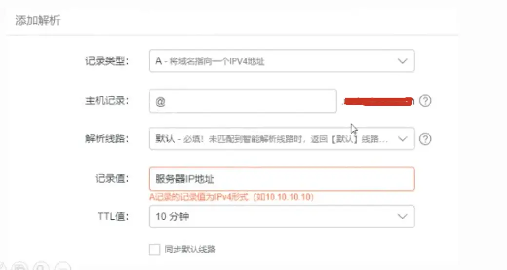 购买后,设置域名解析,表示该域名指向的服务器ip地址