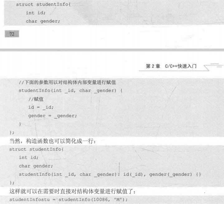 ①构造函数:不需写返回类型,且函数名与结构体名相同