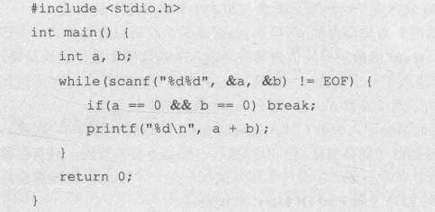 while(scanf("%d%d",&a,&b), a || b) {