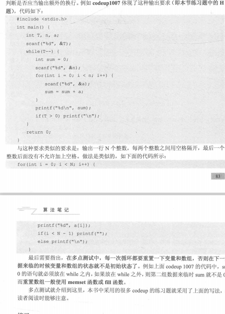 1)使用情况:题目给出测试数据组数,再给出相应数量组数输入数据,用变量T存储组数