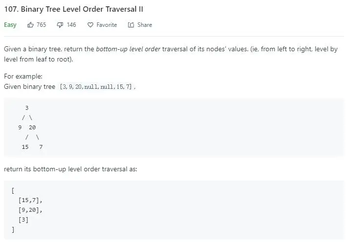 树的层次遍历,和 102 题 的不同之处是,之前输出的数组顺序是从根部一层一层的输出,现在是从底部,一层一层的输出。