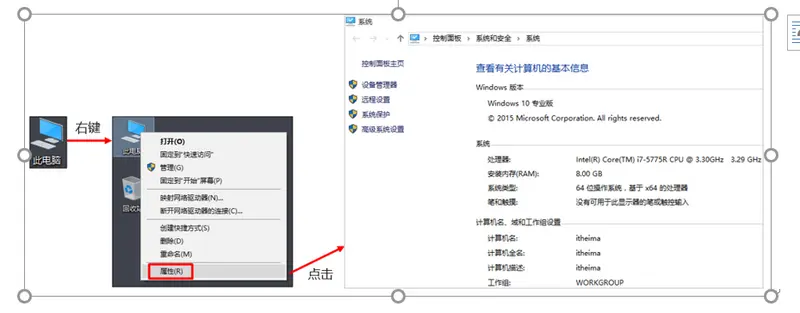 - 右键点击“此电脑”,选择“属性”项。