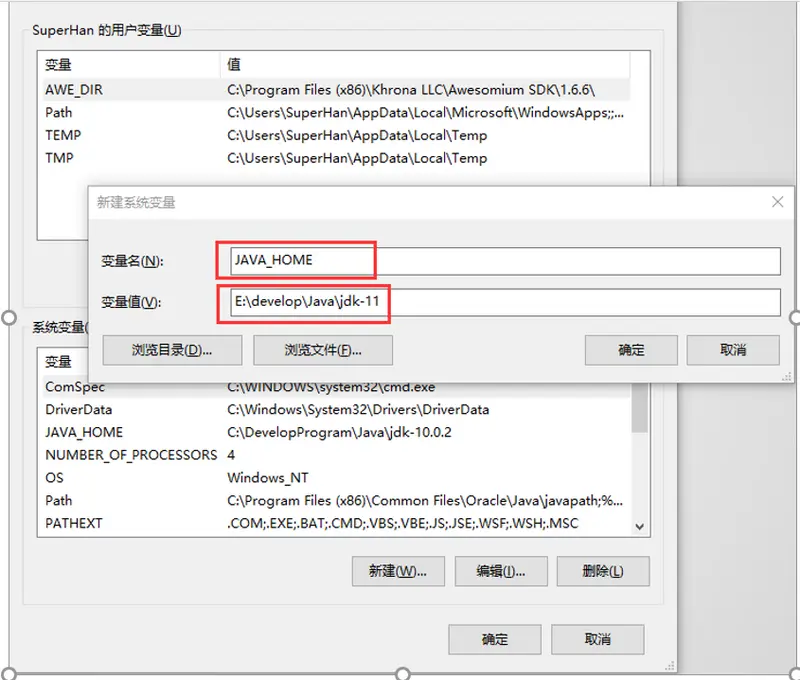 变量值为JDK的安装路径,到bin目录的上一层即可。比如E:developJavajdk-11