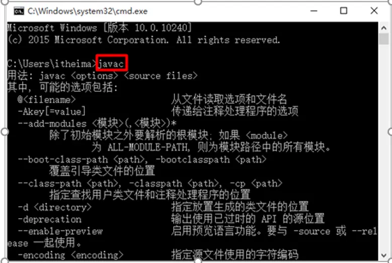 如果之前已经打开命令行窗口,需要关闭重新启动才可。在非JDK安装的bin目录下,输入java或者javac命令,查看效果。