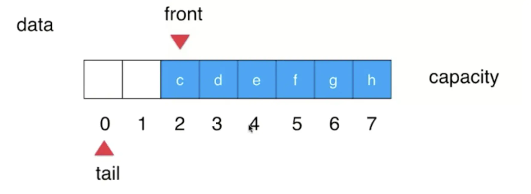 出队:O(n) 每次出队,我们要把出队元素后面的元素向前移动,遇到缩容还要O(n)