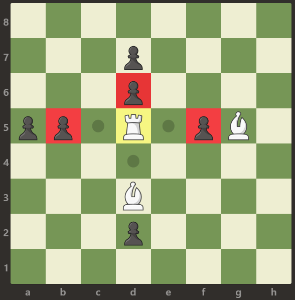 解释:车可以捕获位置 b5,d6 和 f5 的卒。