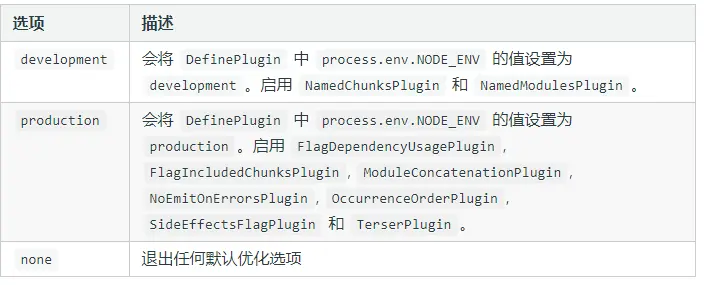- mode用来指定当前构建的环境
