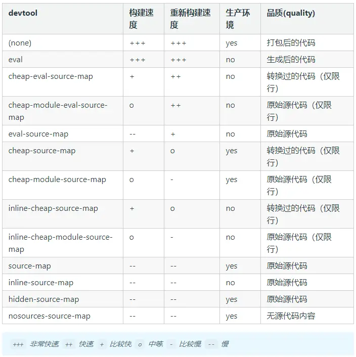 devtool:"cheap-module-eval-source-map",//开发环境配置 devtool:"cheap-module-source-map",// 线上生产配置